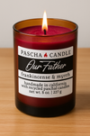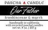 The Our Father Candle is inspired by the prayer that unites Christians around the world. Hand-poured with care, it carries the timeless, sacred fragrance of frankincense and myrrh — resins long used in worship, prayer, and offering. The warm, meditative aroma invites stillness, reverence, and reflection, filling your space with a sense of the holy.