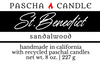 The St. Benedict Candle was created in collaboration with Saint Andrew’s Abbey in Valyermo, CA, using Paschal wax from their chapel. Infused with the grounding fragrance of sandalwood, it reflects the Benedictine call to balance prayer and work, silence and community.